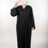 Abaya noir avec fermeture a pression , details de boutons sur le devant , resserré au niveau des poignets , fournis avec foulard .