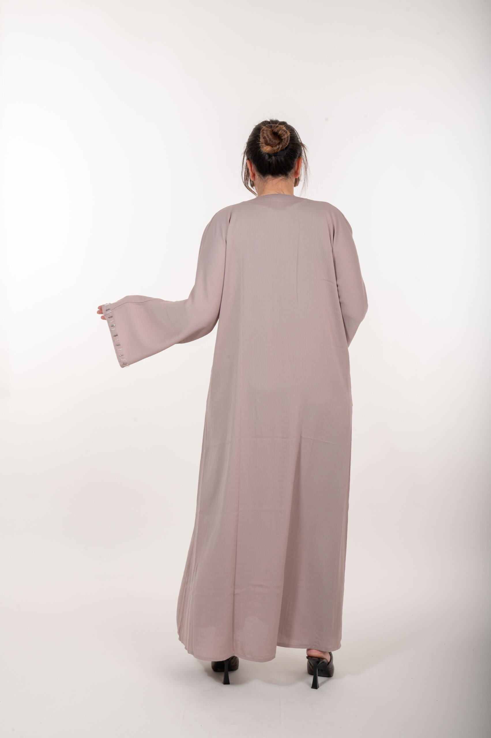 ABAYA HAJER , ROSE POUDRE , DÉTAILS PLISSÉ SUR LE CÔTÉ FERMETURE À PRESSION FOURNIS AVEC SON VOILE ET SA CEINTURE